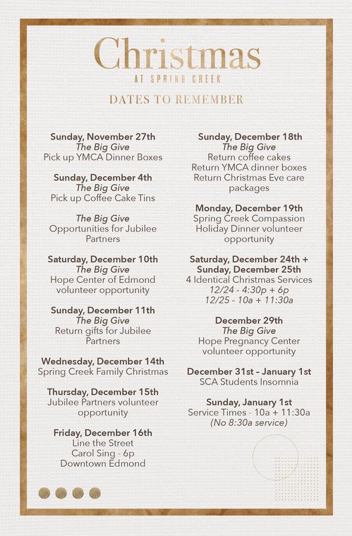 Check out all of the events and services happening at Christmas at Spring Creek!