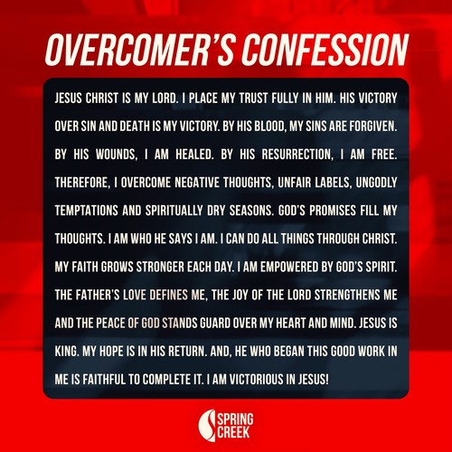 Jesus Christ is my Lord. I place my trust fully in Him. His victory over sin and death is my victory. By His blood, my sins are forgiven. By His wounds, I am healed. By His resurrection, I am free. Therefore, I overcome negative thoughts, unfair labels, ungodly temptations and spiritually dry seasons. God’s promises fill my thoughts. I am who He says I am. I can do all things through Christ. My faith grows stronger each day. I am empowered by God’s Spirit. The Father’s love defines me, the joy of the Lord strengthens me and the peace of God stands guard over my heart and mind. Jesus is King. My hope is in His return. And, He who began this good work in me is faithful to complete it. I am victorious in Jesus!